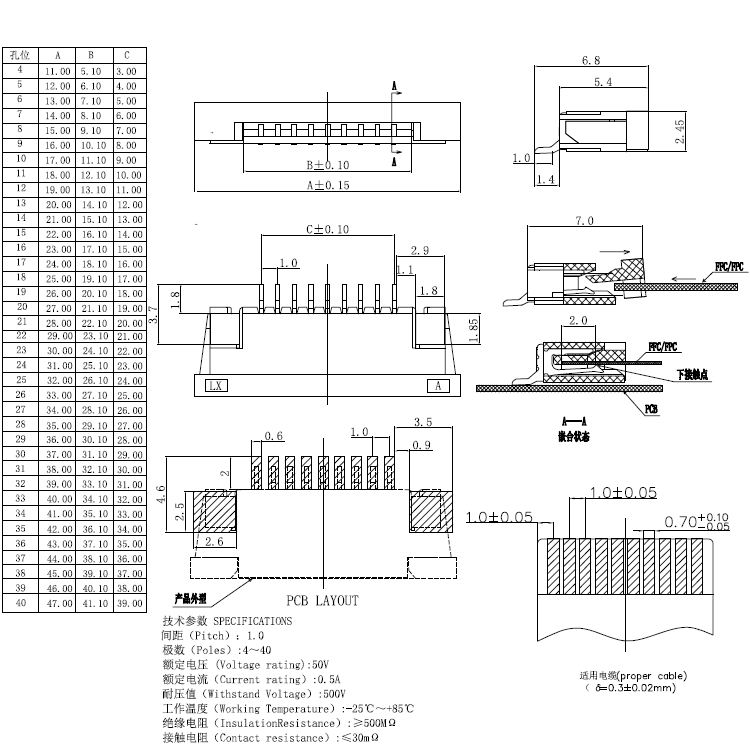 1.额定电压、电流:50V DC/AC 2.接触电阻:≤30mΩ