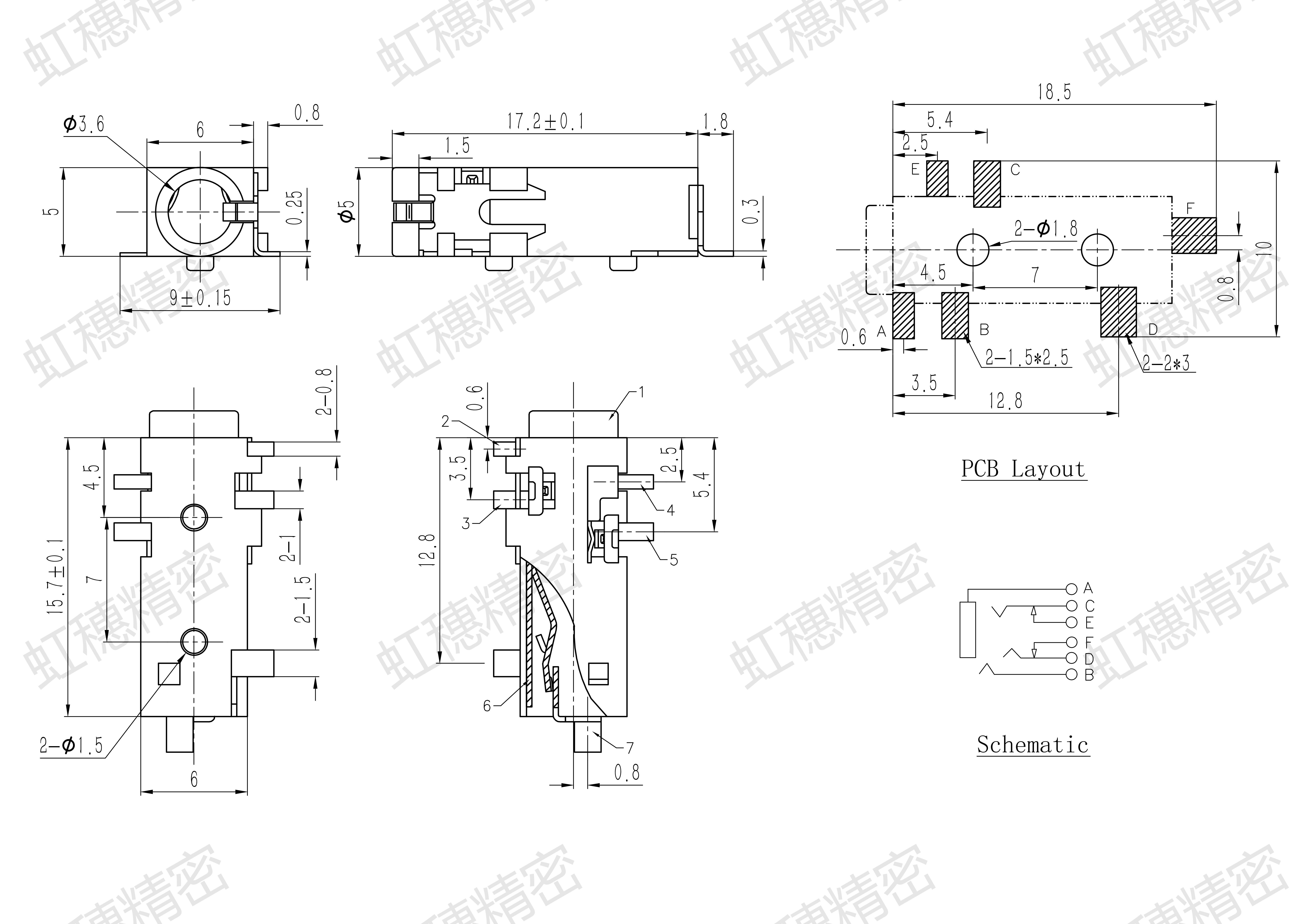 1. 额定电流、电压: DC 30V 0.5A 2. 接触电阻: ≤100mΩMAX